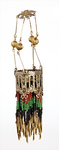 Puppenstuben-Deckenleuchter, Messingblech, Glasperlen montiert, 9,5 cm