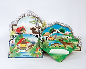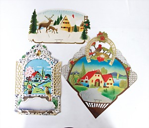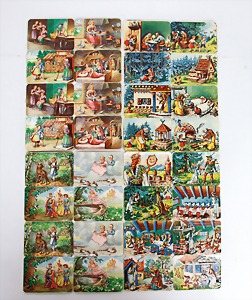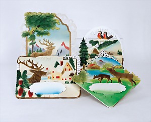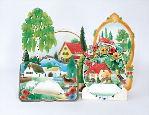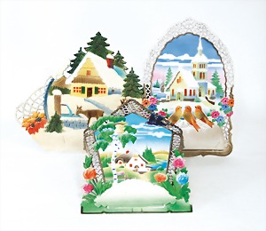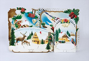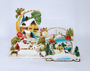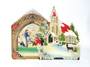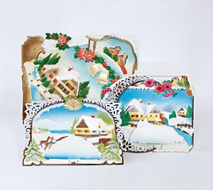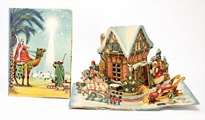 4 set up pictorial broadsheets, designed and produced by artia prague, printed in Czechoslovakia, 206/2, set up-crib, 103, opening of presents at Christmas, set up-crib Gloria in excelsis deo, 106, Easter festival, mostly condition 2