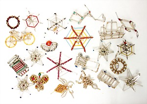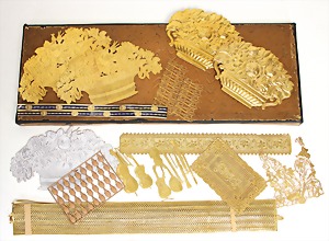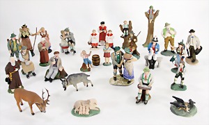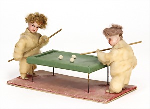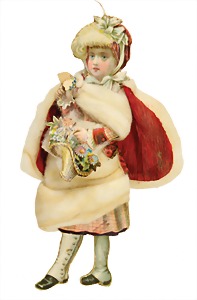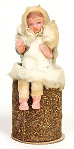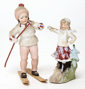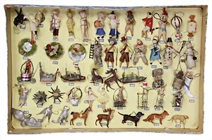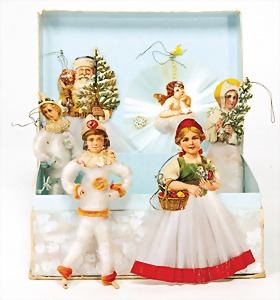 Christmas tree decoration, pattern box, 10 pieces Dresden cardboard, cotton wool figures, Sebnitz, Heubach children, with porcelain heads, all in all 48 objects, unusual