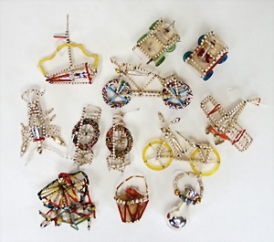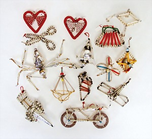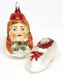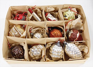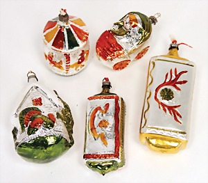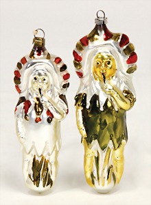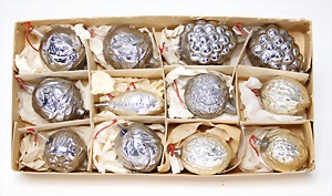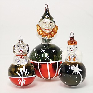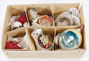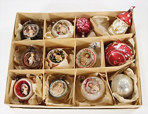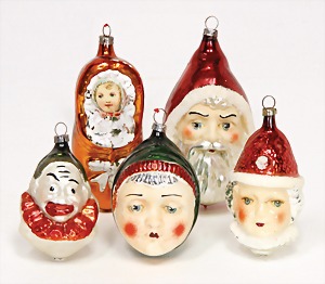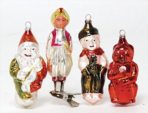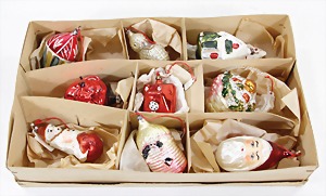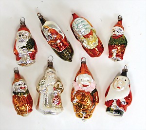 Christmas tree decoration, mirror glass, 12 pieces, monkey as clown, child, ship, Santa Clauses, automobile, fish, with 1 bird, frosted glass, as lighting appliance, 6 - 9 cm