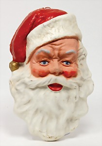 Santa Claus, big Candy container, 78 cm, mass head, pelt beard, papier mâché body, original felt clothes, lantern that can be light up with candles, pannier with toy and small tree