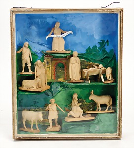 board Noah`s ark, 32 cm, c. 1880, wood colored frame, upper edge is stuck with paper, color is caused of old age a bit weakly visible, original condition