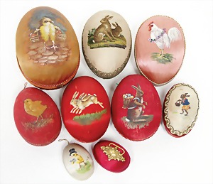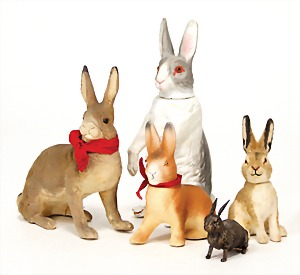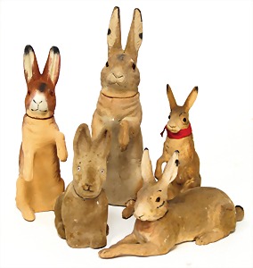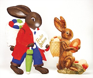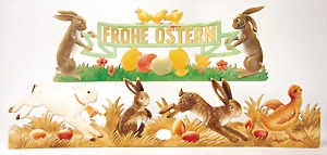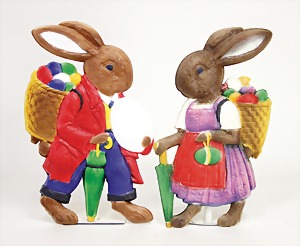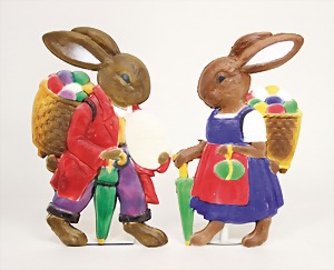 2 x advertising figure, stampedcardboard, colored frame, hare, 1 x inscription: Happy Easter, 62 cm, 1 x 53 cm, at small places is the color slightly wear down