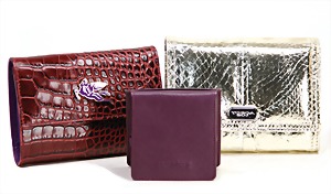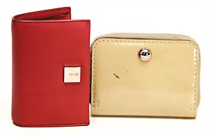 3 Teile, 1x TOSCA BLU, Damenportemonnaie, goldfarbene Metall-Schlangenoptik, Druckknopfverschluss, 1 Münzgeldfach mit Reißverschluss, 4 Kreditkartenfächer sowie 2 zusätzliche Fächer, 1 Scheinfach, 1 Geheimfach, H: 9 cm, B: 10 cm, T: 3 cm, silberfarbene Plakette auf der Frontseite mit TOSCA BLU Prägung, 1x GOLDPFEIL, Damenportemonnaie, lilafarbenes Leder, GOLDPFEIL-Prägung auf der Front, 1 Füllfach mit Druckknopfverschluss, 1 Geheimfach, schwarzes Leder innen, H: 7,7 cm, B: 8 cm, T: 1 cm, 1x ETRO, Damenportemonnaie, bordeauxrote Reptilienleder-Optik, lilafarbenes Leder innen, 1 Scheinfach, 3 Geheimfächer, 4 Kreditkartenfächer, 1 Münzgeldfach mit Druckknopf, H: 9 cm, B: 13 cm, neuw. Zust.