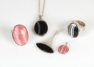 Lot Schmuck: Silber u. Malachit, 1 Brosche D = 23,5 mm; 1 Armband, 5 Malachitplatten (15,5 x 15 5 mm, L = 19,5 mm; 1 Armband, 5 Malachitplatten (18 mm), untergebautes Kastenschloß mit 2 Sicherheitsachten, L = 18,5 mm; 1 Anhänger, Malachit, D = 43 mm, 1 Kette, L = 45,5 cm; 1 Paar Ohrclips, D = 25 mm; ; 1 Paar Ohrclips, D = 13,5 mm; 1 Ring, RW ca. 53 (verstellbar !);