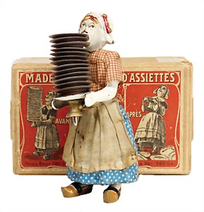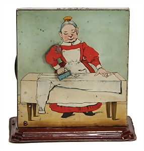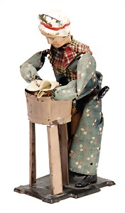 drive model, c. 1910, 8743/4, woman with ironing board, lithographed sheet metal, 12 cm, used good condition