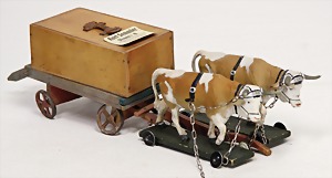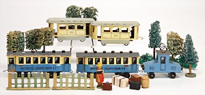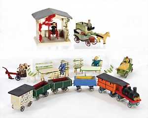 miniatures, train, plough with 2 horses, some automobiles, among them a whey car, 1 small winter garden