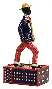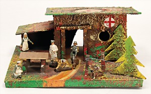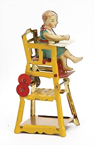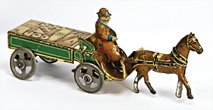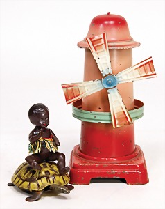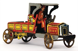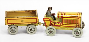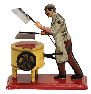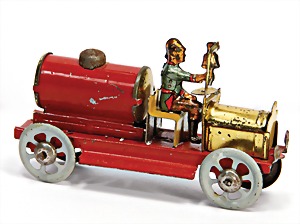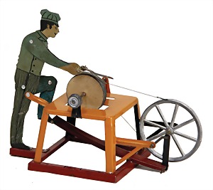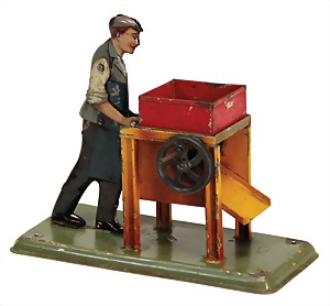 drive model, man at sieve, lithographed sheet metal, slightly used, good condition, c. 1920