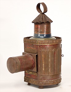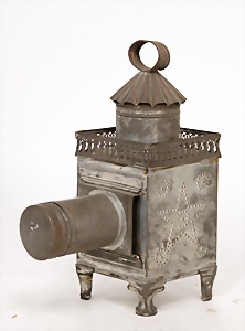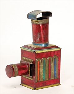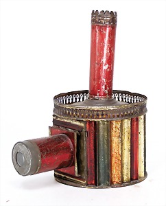 early Laterna Magica, tinplate, soldered by hand, c. 1880, 28 cm, without burner, with objective
