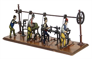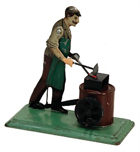 drive model, smith at anvil, c. 1920, lithographed sheet metal, height: 14 cm, good condition, with small traces of usage