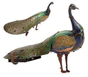 seal, handpainted sheet metal, with stronger scratches on the paintwork, clock mechanism is intact, 1 fin loose