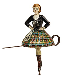 gyroscope, dancer, lithographed sheet metal, pre-war era, height: 15 cm, friction drive, good condition, tip of the nose with small scratches on the paintwork