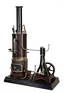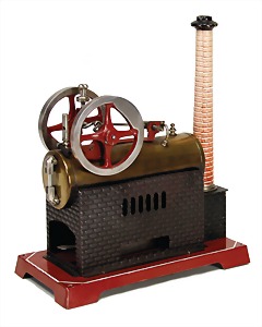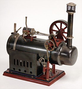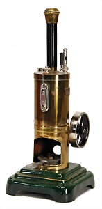 stationary traction engine, 24.5 cm, water level glass, whistle, regulator of centrifugal force, oscillating cylinder, with burner, base plate was over painted, used