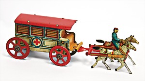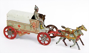Meier, hospital-coach, with driver figure, lithographed sheet metal, 12 cm, good condition