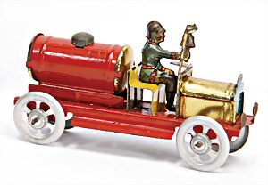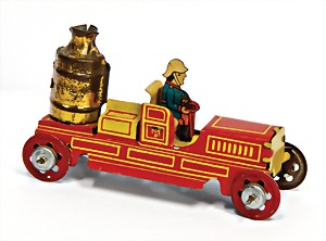 Meier, fire engine, lithographed sheet metal, with driver figure, 8.5 cm, very good condition