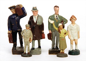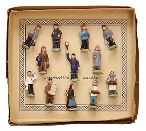 figure set, mass, 3.5 cm, probably suitable to track 00, pre-war era, good condition, in original box, unusual