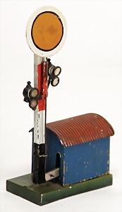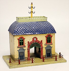 track 0, RS950, brown, old Märklin symbol, good condition, clock mechanism is intact, roof was supplemented