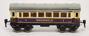 track 0, 4-axled passenger coach, Rheingold, 1758, with interior fittings (as dining car), good condition