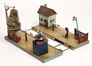 station, handpaintedsheet metal, window frames and archway are lithographed, with pantograph, surface area: 16.5 x 25.5 cm, good condition