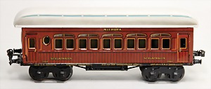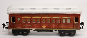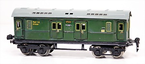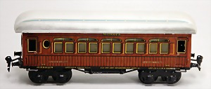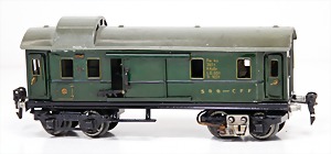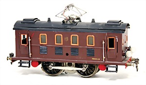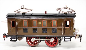 track 0, 4-axled baggage coach,1889, used paint with spider lines, frame was colorwise retouched