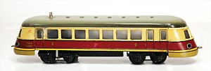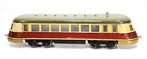 track 00, ST 800, ivory/blue, 3-part, with additional middle course, casting, American railcar, good condition, in original box, if it is a very good restoration or the original color should be decided by a personal viewing