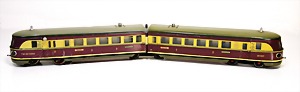 track 0, TW 6612940, 2-part railcar, purple/ivory, 60 cm, slightly used, with small scratches on the paintwork that are caused of old age