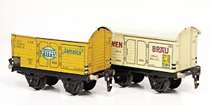 2 pieces, track 0, 2-axled freight waggon, 1688, Löwenbräu, good condition, 1682, 2-axled freight waggon, Jamaica, used, roof was colorwise retouched