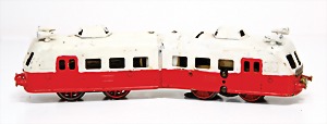 track 0, 2-part railcar, white/red, casting, electrical version, 29 cm, used, the scratches on the paintwork are caused of old age