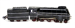 streamlined locomotive 1C1, track 1, bakelite, 20V, small corner at tender in the back is missing, otherwise used, good