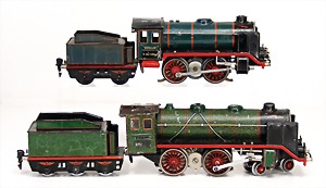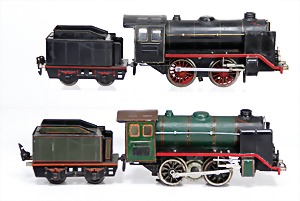 track 0, E6612920, steam locomotive with separate tender 2 B, green/black, with stronger formation of spider lines, used, axles were supplemented, 1 steam locomotive with separate tender R6612910, blue/green with red ornamental lines, used, the scratches on the paintwork are caused of old age