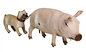 5 pieces, 1 Mucki, with button, chest label and flag, No. 8718.02, cap missing, 1 Mecki, 17 cm, with chest label, first edition, 1 Gucki, with chest label, 13 cm, 1 wool hare, with button and flag, 1 wool-duck, manufacturer ?, 1 hedgehog, complete 1 Joggi, No. 1670/10, 1 Neanderthal man, complete, No. 7755/13, storage tracks at face and the arms, good condition