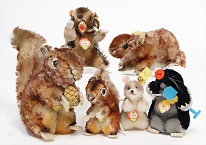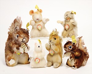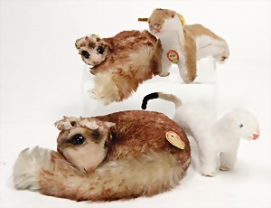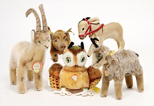 6 pieces, complete, Piff, cloth tag label is worn, Goldy, complete, number is illegible, Pieps, number is illegible, Perri, complete, No. 4317.03, Perri, complete, number is illegible, 10 cm, Possy, complete, cloth tag label is worn, very good - slightly used condition