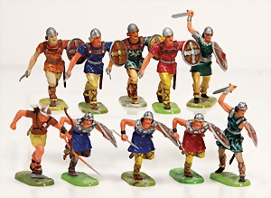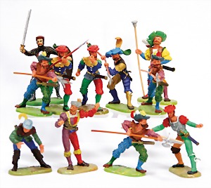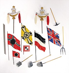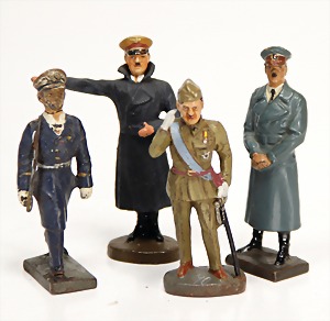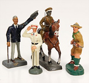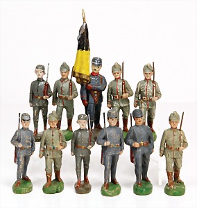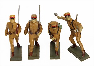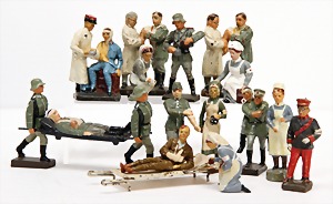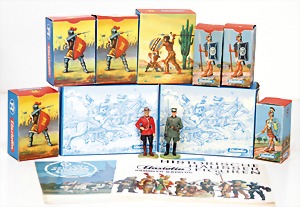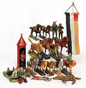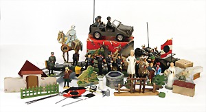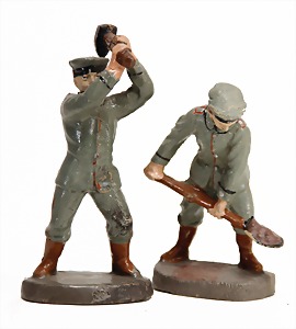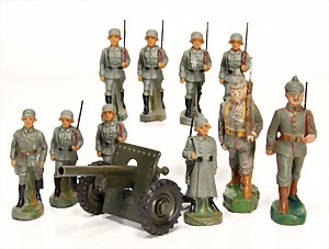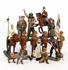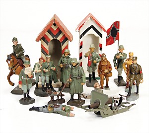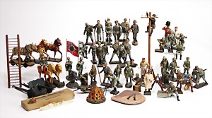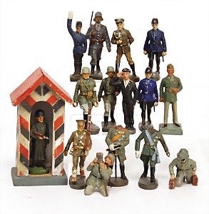 u. andere, Fundkiste, Feldwebel bei der Ausbildung, Luftwaffe, marschierend, 1 paar Figuren ohne Kopf, ein paar Figuren kl. Beschädigungen, Wachmann mit Häuschen, 1 Panzerfahrer