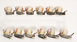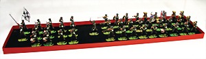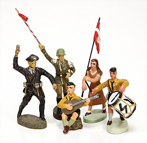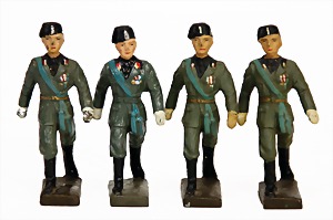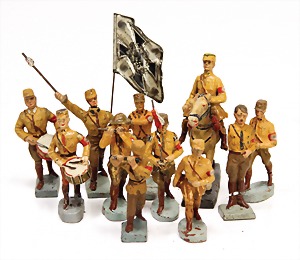 Kunststoff, Nr. 10190, Spielmannszug, 40 Musiker, 1 Fahnenträger, 1 Figur mit Stab, Schaufensterdekoration, mit Plexiglassturz, sehr guter Zust.