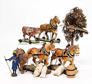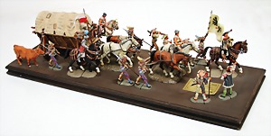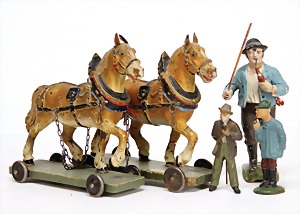 Kaufmannszug, in Sammler Luxus Bemalung, Nr. 62/2001982/83, Auflage 200 Stück auf Holzbrett montiert, 7/7,7 cm Figuren, sehr guter Zust., im Kart.