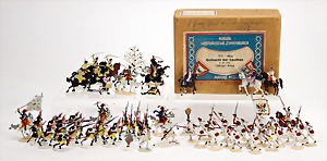 flache Zinnfiguren, 4,5 cm, " Schlacht bei Leuthen 5.12.1757 ", 7 jähriger Krieg, Kieler historische Zinnfiguren, ca. 1920, im Orig.- Kart., ca. 60 Teile