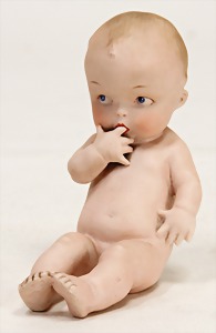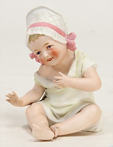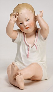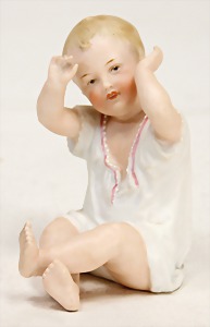 Pianobaby, Porzellan, gem. 9, sitzend, H: 21 cm, rechter kl. Finger ergänzt