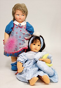 2 Teile, Bärbel, gem. 45, blaue eingesetzte Glasaugen, kl. Delle auf der rechten Wange, Inge, gem. 42, fester Kopf