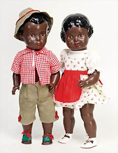 Pärchen, Kunststoffkopf, Echthaarperücke, Stoffkörper, 46 cm