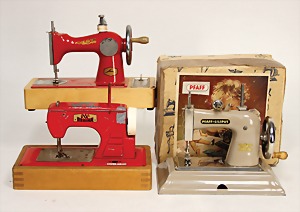 3 Kindernähmaschinen, bespielt, davon 1 x Pfaff, im Orig.-Kart.