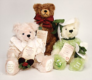 3 Plüschbären, neu, mit Zertifikat, Schneeglöckchen, Diana Memorial Bär, Musikbär, ca. 35 cm, unbespielt