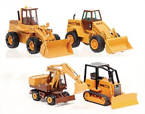 Case, 4 Modell-Fahrzeuge, NZG Modelle, Maßstab 1:35, Baufahrzeuge, 3 Radlader, 1 Bagger, guter Zust.