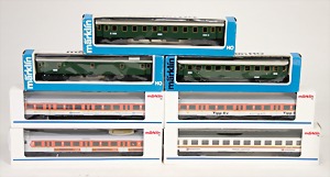 H0, 7 Teile Personenwagen, 4232, 4106, 4104, 4105, 4136, 4142, 4141, neuwertig, Orig.-Kart.