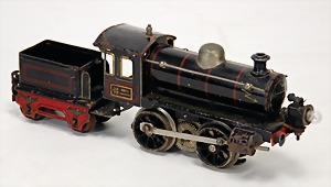 Spur 0, Schlepptenderlok B, altes Märklin-Zeichen, Blech, schwarz mit roten/grünen Zierlinien, mit ein paar Lackfehler, bespielt, gut, techn, nicht geprüft