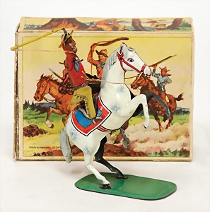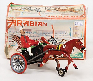 ARABIAN, Blech- u. Kunststoffteile, Figur u. Pferd Masse, 16 cm, Uhrwerk intakt, neuwertig, Orig.-Kart., Kart. seitl. etwas verschlissen