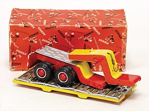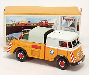 Konv. Blechspielzeug, Gama-Tank, ohne Ketten, Arnold Rapido, im Orig.-Kart., Hubschrauber, Riesenrad, 1 Gondel fehlt, Reckturner, Gama American, Treppe für Flugzeug, Blech lithogr., gut, 1 Arnold Wendebahn, defekt,1 Roboter, Kunststoff, 1 Lastwagen, Japan, Power Brute Dump Truck , Kunststoff, Zinkpest an den Achsen, sonst gut, im Kart., bitte besichtigen