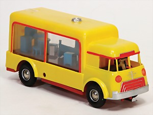 Möbelwagen, Kunststoff, mit Klarsichtseiten, Fahrer-Figur, 21,5 cm, Bodenplatte produktionsbed. minim. verzogen, minim. Haarriss am Dach, sonst neuwertig, Lagerfund, absolut selten