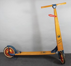 Roller, Holz, Blechteile, H: 89 cm, Lagerfund aus altem Spielwarengeschäft, Lagerungsspuren, unbespielt