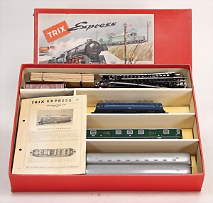 TRIX Express Zugpackung, 7/1012, Schnellzug, mit E-Lok E 10, 2 kl. Tenderlokomotiven, V 200, 2 Güterwagen, 3 Personenwagen, alles guter Zust., techn. nicht geprüft