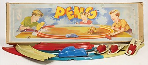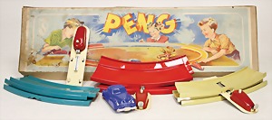MS, Peng, Unfall-Spiel, Blechschienen, Fahrzeug, Blech/Kunststoff, mit 1 Fahrzeug, im Orig.-Kart., guter Zust.
